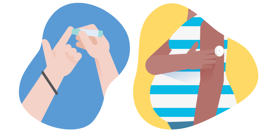 For the first 1-2 weeks you would do finger-prick monitoring and wear a ‘masked’ sensor, which means you wouldn’t be able to see the CGM sensor data. This is really important to get your starting glucose levels and check you are ok wearing the sensors. After 1-2 weeks you would be randomly allocated to either finger-prick or CGM for the rest of your pregnancy. If you were allocated to finger-prick monitoring we would ask you to wear the masked CGM sensor at four other times. If you were allocated to CGM then you would wear sensors on your arm, which feed glucose information to your phone.